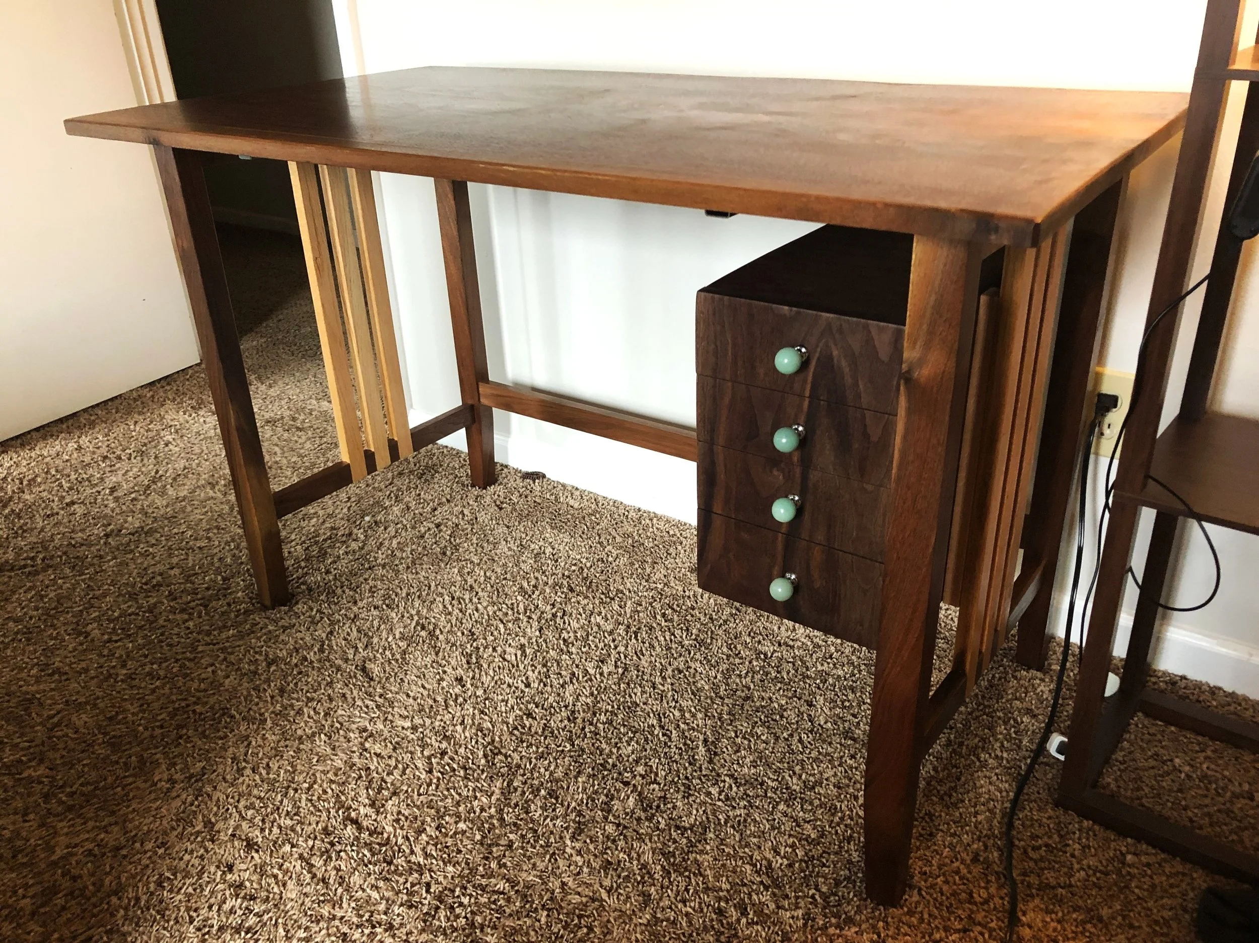 the 4 drawers offer plenty of space, all from a single piece of walnut to contrast yet compliment the top.
